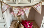This Hessian Bunting features 10 hand-finished flags, each decorated with soft vintage lace accents, all strung along 4 metres of hand-braided jute. Every piece is unique, giving it a special, one-of-a-kind charm.