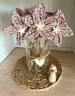 Memory Flowers are custom-created for you using fabric from your loved ones' clothing. Each flower is hand created, with clay centers and hand-wrapped stems. They are fully lined and are a large 38cm x 15cm in size. Any type of clothing can be used.