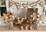 This Hessian Bunting features 10 hand-finished flags, each decorated with hand-pressed clay hearts and soft vintage lace accents, all strung along 4 metres of hand-braided jute. Every piece is unique, giving it a special, one-of-a-kind charm.