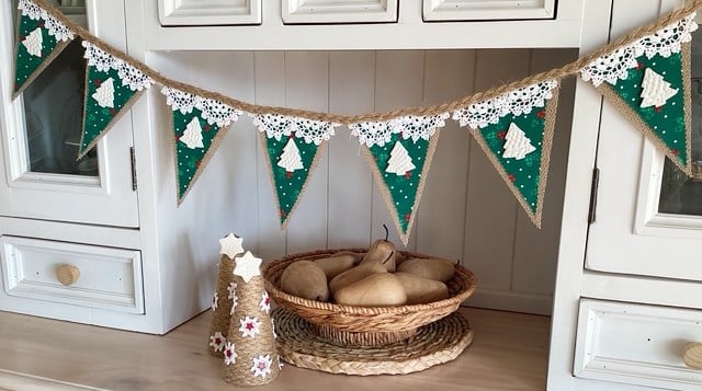 #3 GREEN Rustic Christmas Bunting - 10 Flags
