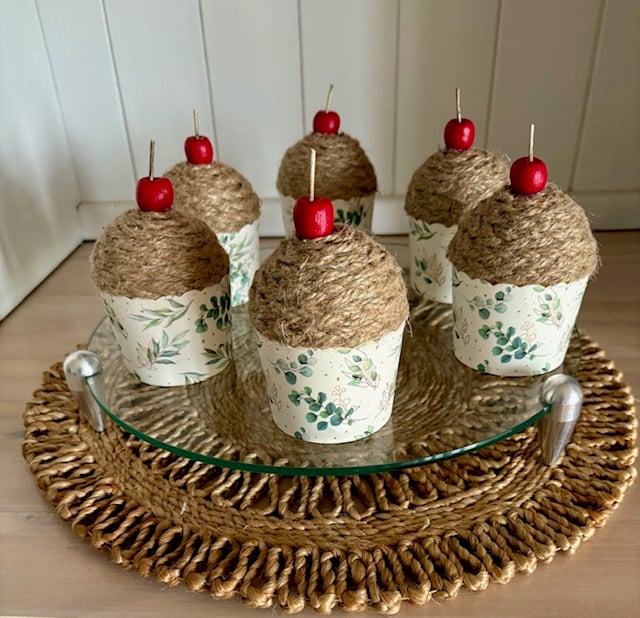 These charming cupcakes are lovingly hand-created, each topped with hand-shaped clay cherries that are carefully hand-painted and finished with real stems gathered from trees on our acreage. Every cupcake has its own personality — no two are ever the same, making each set truly one of a kind.